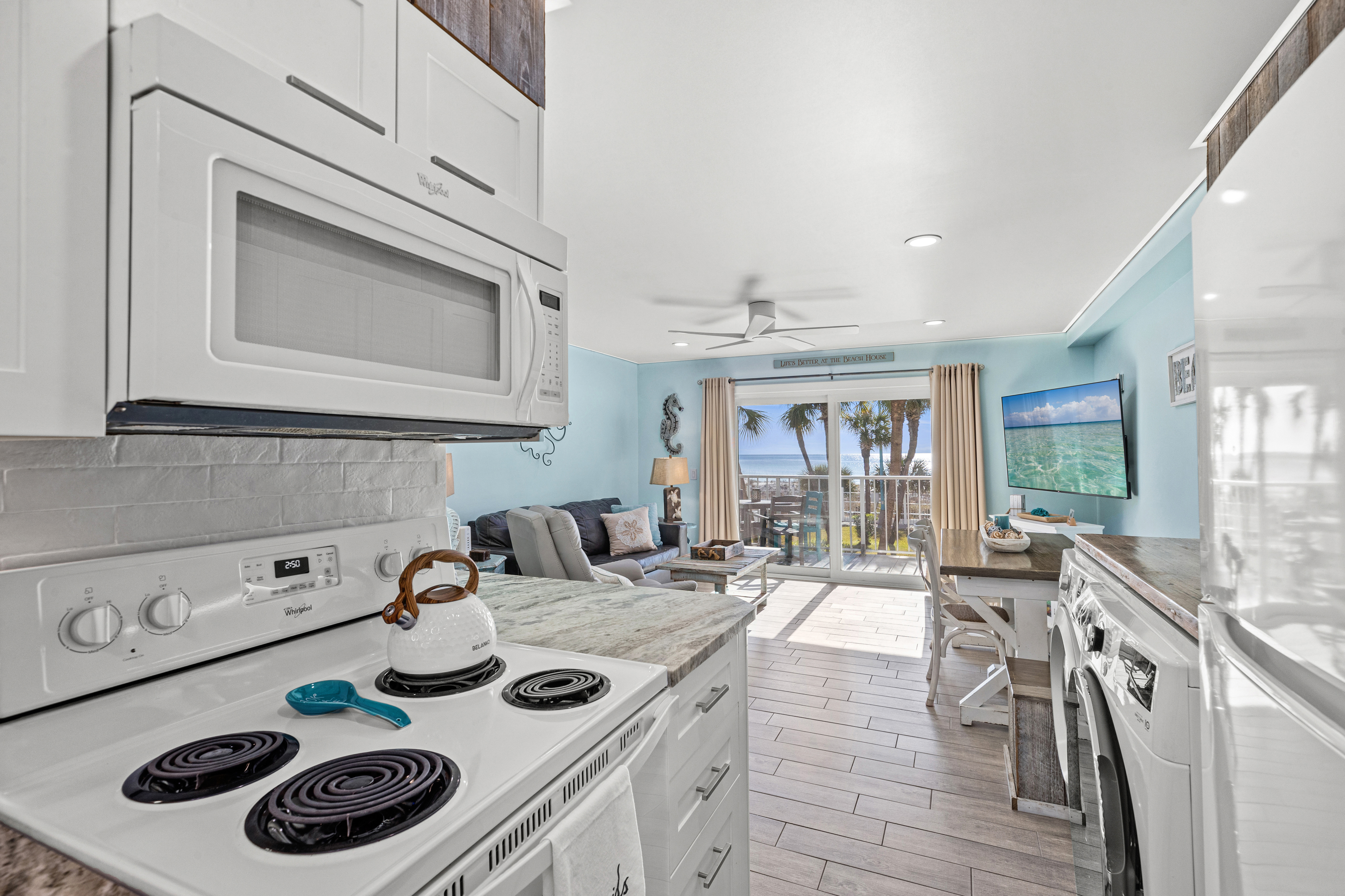 Bright Shabby/Coastal Chic décor, spotless interiors, and thoughtful touches throughout make this condo a guest favorite. Sleeps up to 5 guests.