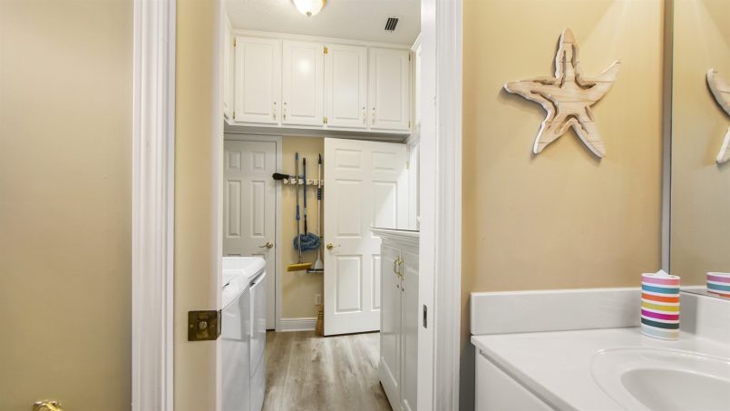 For your added convenience, we have a laundry room with a full sized washer/dryer, free Wifi, a pack-n-play for any little ones, and beach essentials like chairs, an umbrella, boogie board, fishing poles, a fish net, and sand buckets. The back area is fenced, and we welcome two pups (max 25 lbs each). Please use the Dog Crate in the downstairs suite when out and about.