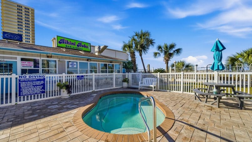 Bikini Bob’s Poolside Bar and Grill which offers lunch and dinner items, soft drinks, ice cream, and adult beverages