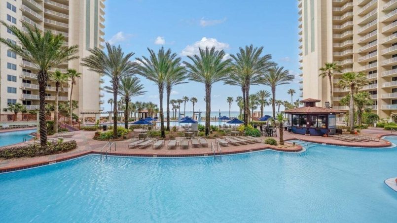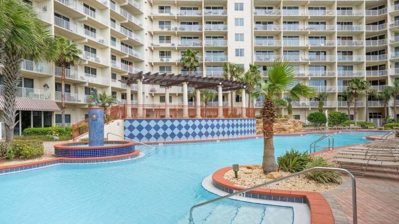 Shores of Panama has the best pool in Panama City Beach with fun events and activities for kids and adults alike. There is a snack bar where you can grab a bit or adult beverages. There is a hot tub on property along with a heated indoor pool and a fitness center.