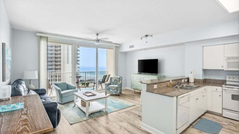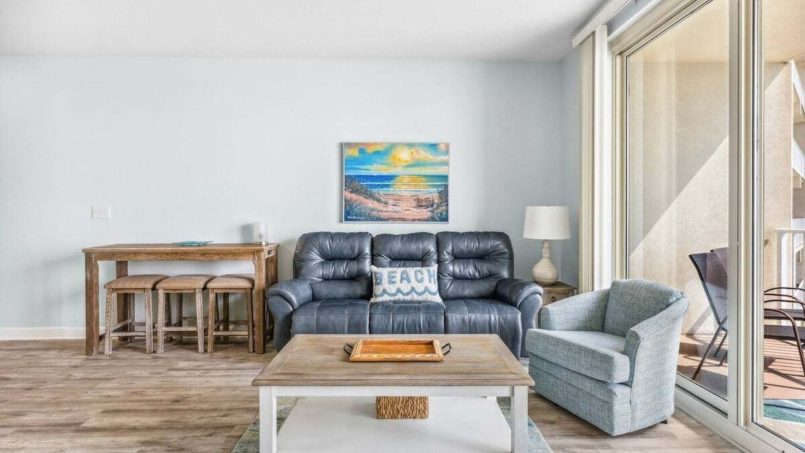 Step inside this one bedroom + bunk nook beauty and immediately relax for a great stay. With comfortable seating, a stunning view, access to a private balcony, and a full kitchen plus dining area, you’ll have all you need to make amazing memories. We have a smart TV, complimentary wifi, and a washer and dryer for your convenience along with beach towels should you need them. A queen murphy bed will sleep two.