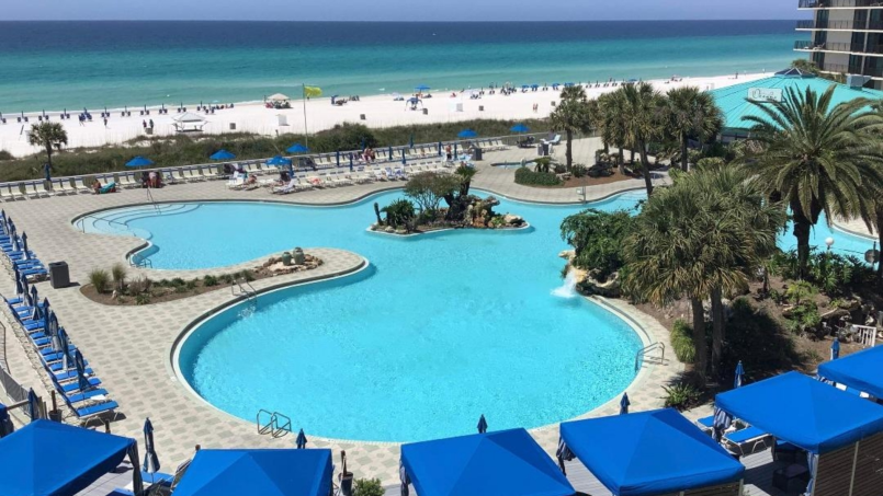 The luxurious Edgewater Beach & Golf Resort in Panama City Beach’s ONLY full-service resort. Just over the resort pedestrian bridge, you’ll find a full restaurant, tiki bar, lagoon pool, kids splash area, Paradise Pizza, Starbucks and more. Just outside the gates of the resort is a multitude of additional walk-to restaurants–everything from NY style pizza to a high-end seafood establishment, an oyster bar, a Cajun cafe, Mexican restaurant, bagel shop, and even a Subway and Waffle House.